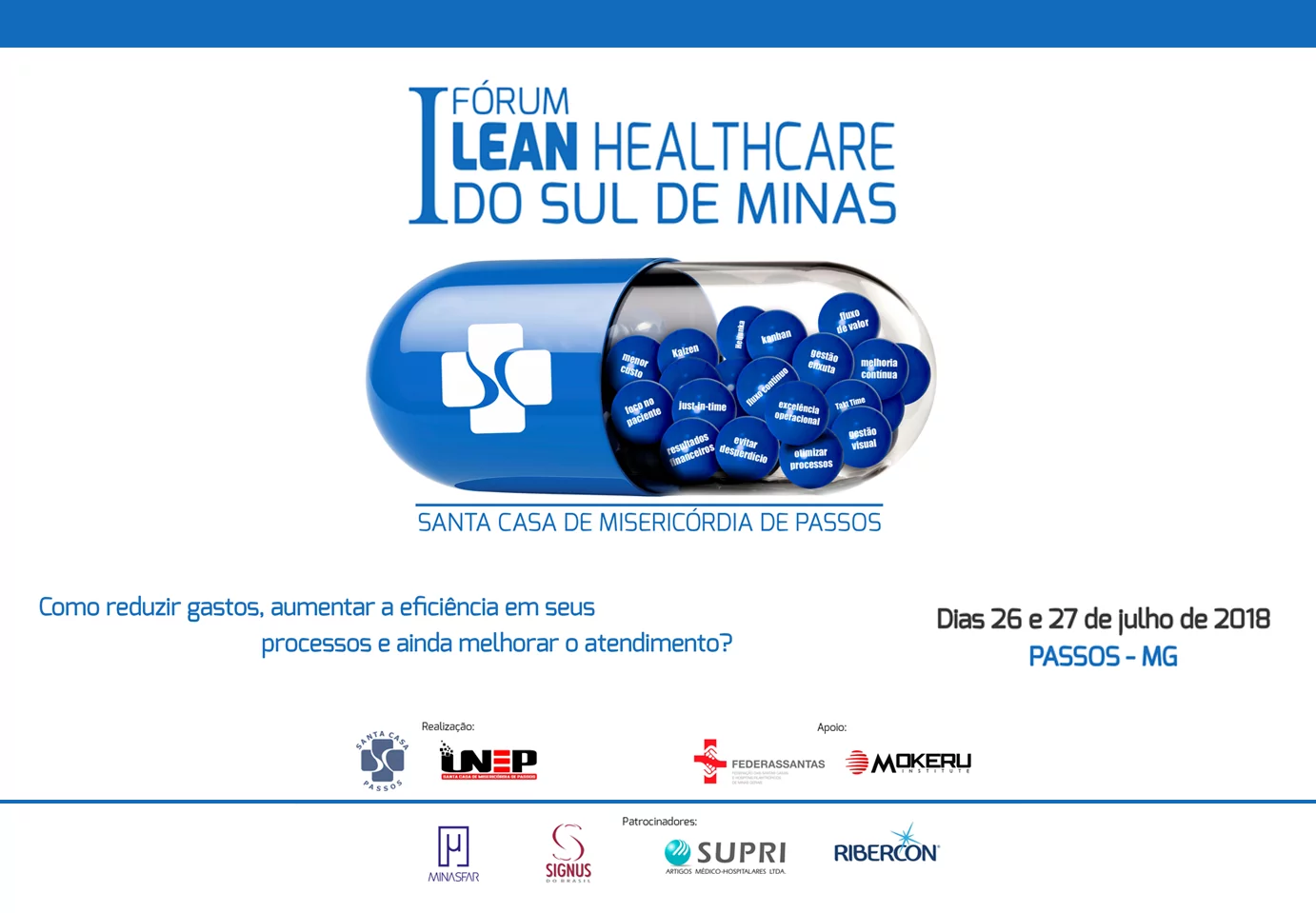 Nos dias 26 e 27 de julho, a Santa Casa de Passos realizará o 1º Fórum Lean Healthcare do Sul de Minas!