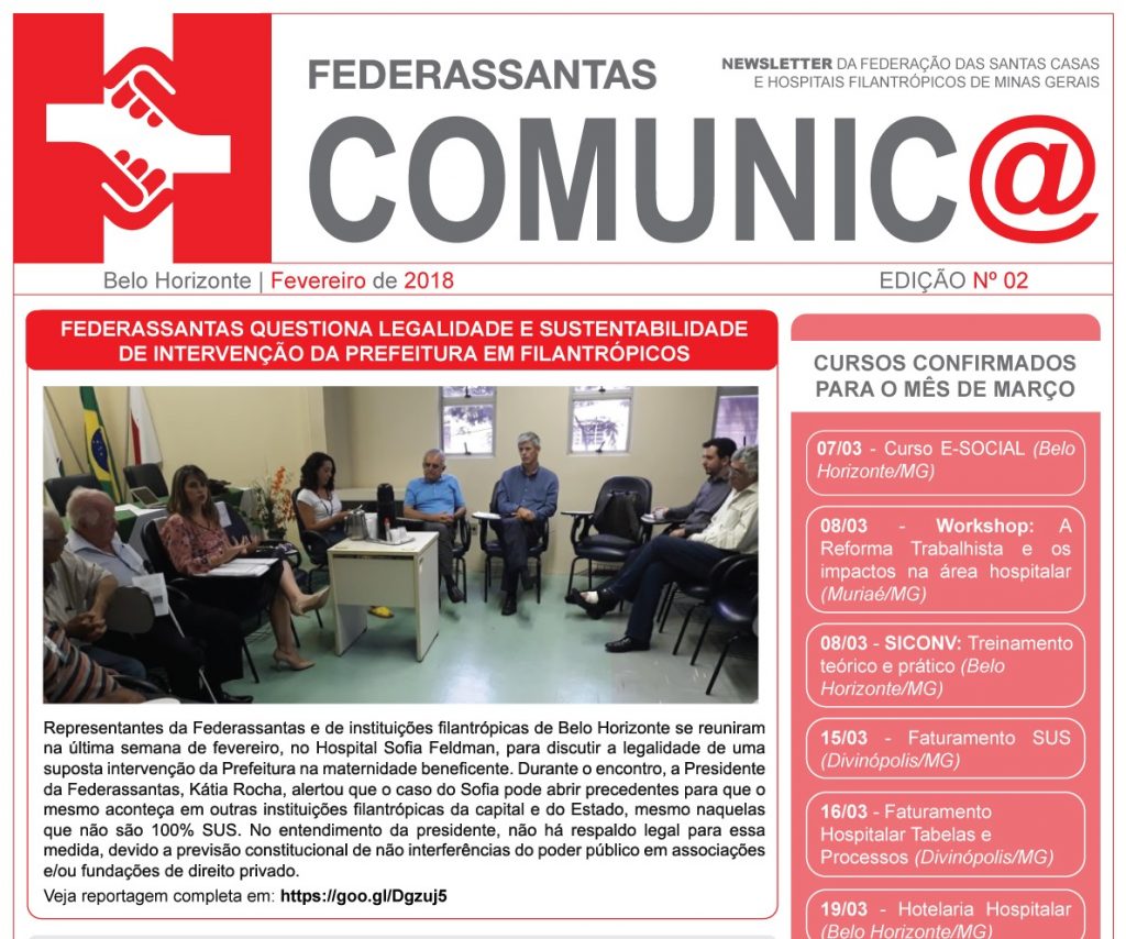 Confira abaixo o boletim Federassantas, edição nº 02, com destaques da Federação e das instituições filiadas, relativos ao mês de fevereiro: Boletim Federassantas edição nº 02