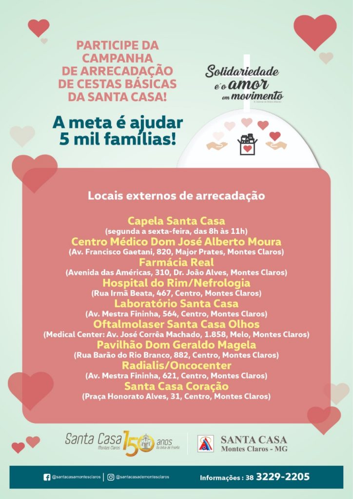 Santa Casa Montes Claros lança campanha de arrecadação de cestas básicas