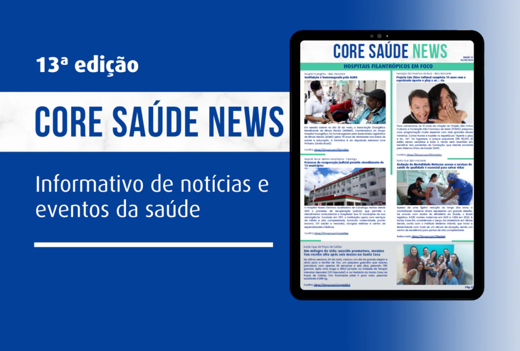 Está no ar a 13ª edição do Core Saúde News! A 13ª edição do Core Saúde News traz matérias dos hospitais filantrópicos, atuação da Federassantas, eventos do setor da saúde e um artigo sobre o uso da telessaúde. Faça o download completo aqui.
