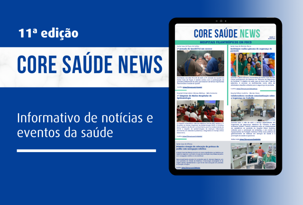 Está no ar a 11ª edição do Core Saúde News! Nesta edição, o informativo de notícias Core Saúde News traz ações realizadas por hospitais filantrópicos, atuação da Federassantas, além de eventos do setor e um artigo do Médico Carlos Lobbé. Faça o download aqui e boa leitura!