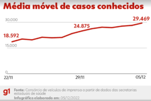 Média de novos casos nos últimos 7 dias: 29.469 (variação em 14 dias: +59%)