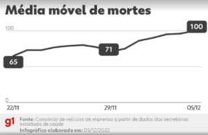 Média de mortes nos últimos 7 dias: 100 (variação em 14 dias: +54%)