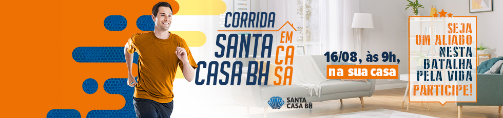 Neste ano, o maior hospital 100% SUS de Minas Gerais tem uma novidade: a “Corrida Santa Casa BH Em Casa”. Programada para o dia 16 de agosto, a partir das 9 horas, a live é voltada para aqueles que querem se exercitar com segurança e ajudar a salvar vidas. As inscrições podem ser feitas pelo site http://santacasabh.org.br/corrida nas seguintes modalidades: corrida de 1 hora, 50 minutos, 40 minutos, 30 minutos e 20 minutos, corrida Kids (crianças nascidas de 2008 a 2016) e corrida Pet. Quem se inscrever pode optar pelo kit com camiseta, medalha e brindes de patrocinadores no valor de R$ 34 ou apenas medalha e brindes de patrocinadores por R$ 17.