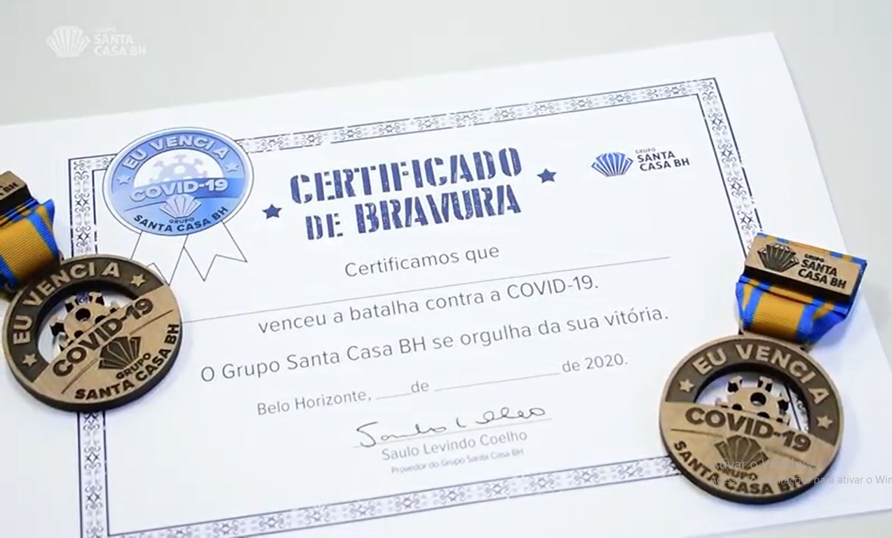 A partir de agora, todos os pacientes com diagnóstico positivo para COVID-19 e que tiverem alta dos hospitais Santa Casa BH e São Lucas recebem uma medalha com os dizeres “Eu venci a COVID-19”, além de um certificado de bravura. Essa é uma maneira de comemorar as vitórias e destacar a importância de cada membro da equipe assistencial no enfrentamento à pandemia.