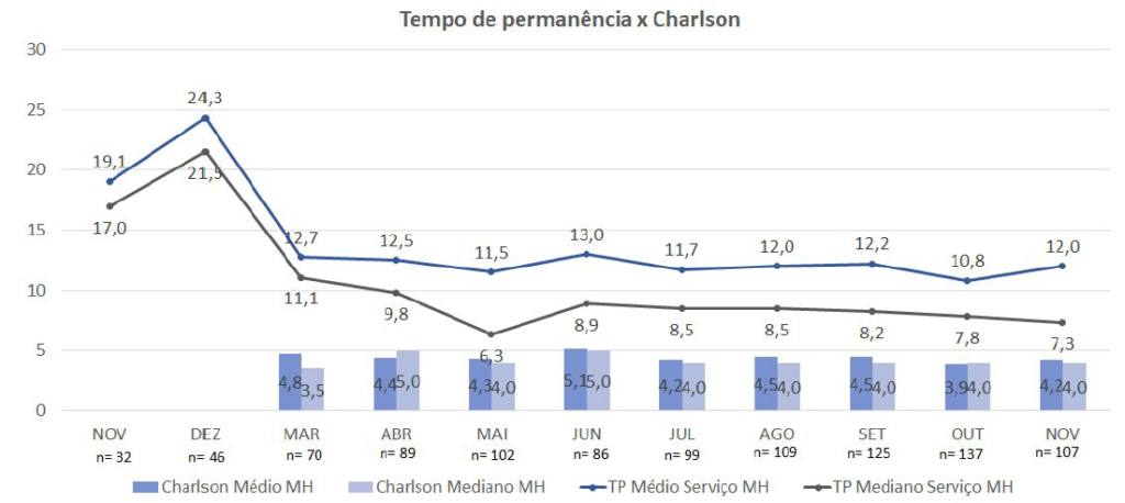 Um exemplo do impacto positivo da implementação do modelo hospitalista com a nossa atuação é o Hospital Público de 155 leitos na Região Metropolitana de Belo Horizonte/MG. Implementamos o novo modelo em março de 2020, e os resultados foram impressionantes.