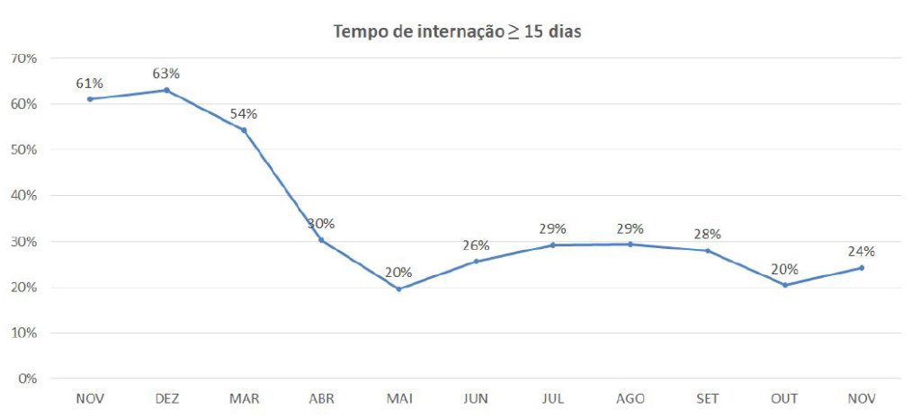 - Redução na taxa de longa permanência em 58%: A taxa de pacientes que permaneceram internados por longos períodos diminuiu drasticamente, liberando leitos para novos pacientes e melhorando a eficiência do hospital.