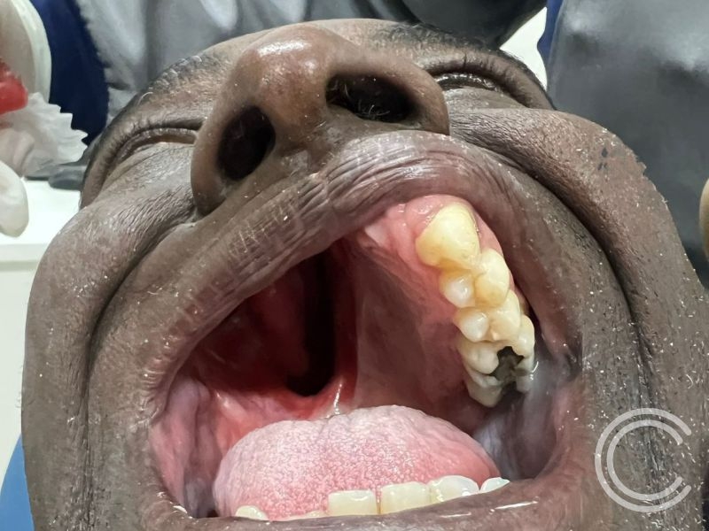 Segundo a Protética, Ione Faria, de acordo com o planejamento feito pelo Protesista, Dr. Matheus Elias, o paciente havia recebido um diagnóstico, prévio, que só poderia usar uma placa obturadora devido à forma resultante da cirurgia, o que impossibilitaria a colocação de dentes. Então, junto ao Dr. Matheus, decidimos colocar dentes na placa, oferecendo não apenas função, mas também estética. “Imediatamente, iniciamos o processo buscando mais conhecimento para criar a prótese que atendesse às necessidades específicas do Alex. A princípio a prótese foi feita de forma provisória para fazermos os testes oclusais e de vedamento da obturação, mas a certeza de seu sucesso veio não apenas da técnica, mas do sorriso e alegria imediatos do Alex ao experimentá-la. Mesmo sendo uma versão inicial, ele insistiu em levar para casa. 30 dias depois, entregamos a prótese definitiva. O Dr. Matheus conseguiu devolver não apenas conforto e função, mas também uma estética favorável. A transformação em sua vida foi notável. Ele ficou genuinamente feliz, e como profissional, essa experiência foi extremamente gratificante para mim ao ver o impacto positivo que a prótese proporcionou a ele”, destaca.