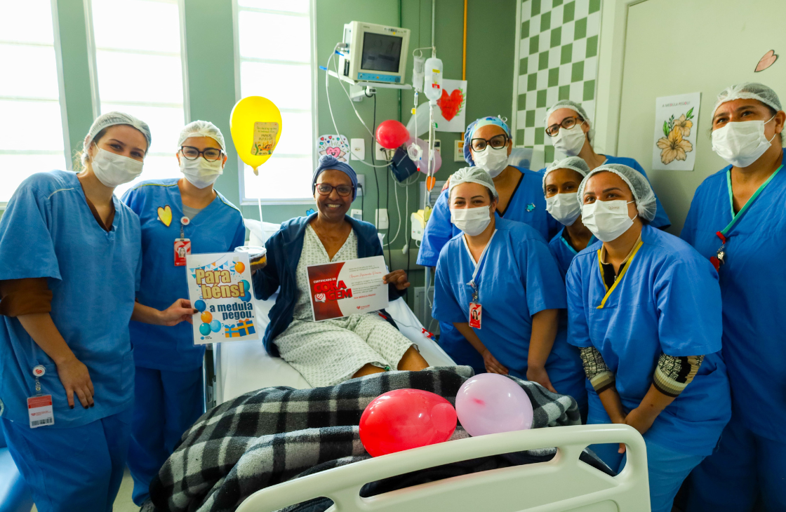Em um dos leitos do 13º andar da Santa Casa BH, a paciente Cleonice Aparecida Pereira sorria e celebrava junto à equipe multidisciplinar, balões, cartazes e aplausos. O motivo de tanta alegria era a confirmação da tão aguardada pega da medula. Com isso, ela se tornou a milésima transplantada de medula óssea do Hospital de Alta Complexidade 100% SUS a ganhar um novo motivo para sorrir.