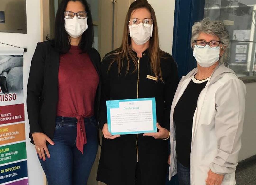 A Santa Casa de Misericórdia de Barbacena recebeu na última quinta-feira, dia 20, pelo terceiro ano consecutivo, da Secretaria de Estado da Saúde, através da coordenadoria de Segurança do Paciente e Controle de Infecção, um certificado por ter alcançado em 100% a classificação de alta conformidade na Avaliação das Práticas de Segurança do Paciente. O certificado foi entregue por Rosana Resgala, coordenadora da VISA na Superintendência Regional de Saúde de Barbacena – SRS, e Jurema, responsável pelo serviço do Núcleo de Segurança do Paciente na SRS. Elas foram recepcionadas pela coordenadora do Núcleo da Santa Casa, Queila Souza.