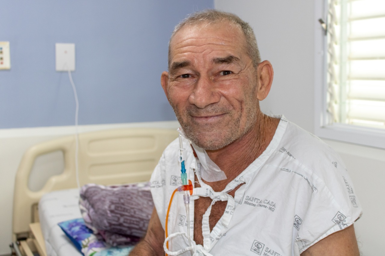 José Claret Soares Afonso, 59 anos, é morador de São João da Vereda, distrito de Montes Claros-MG. Ele foi diagnosticado com mieloma múltiplo, um tipo de câncer que ataca a medula óssea, em maio de 2019. Para recuperar a qualidade de vida, ele foi submetido ao procedimento, que foi realizado através do Sistema Único de Saúde – SUS. “Antes era terrível pra mim porque a situação não era boa. Eu tinha medo quando anoitecia e tinha medo quando amanhecia, pois a dor era demais! Tinha dia que falava com meus irmãos que eu não tinha vida mais”, fala.
