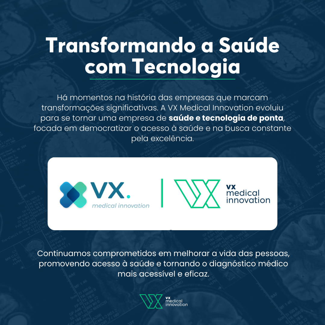 Há momentos na história das empresas que marcam transformações significativas. E é com grande entusiasmo que anunciamos uma emocionante mudança de nossa identidade visual. A VX Medical Innovation evoluiu para se tornar uma empresa de saúde e tecnologia de ponta, focada em democratizar o acesso à saúde e na busca constante pela excelência.