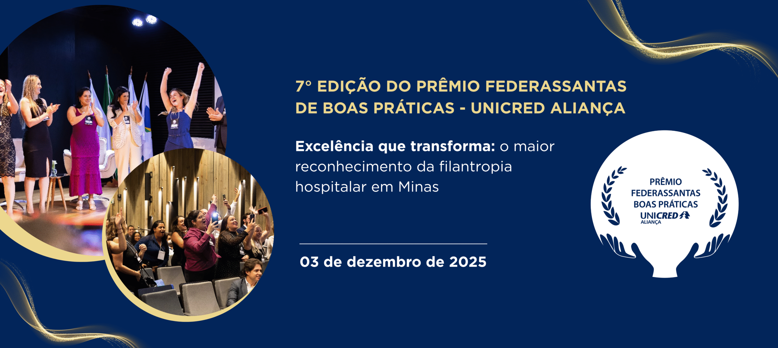Sinônimo de excelência, é a única premiação mineira para as instituições filantrópicas hospitalares, o que faz com que sua importância seja ainda maior. O Prêmio Federassantas de Boas Práticas – Unicred Aliança é realizado pela Federação das Santas Casas e Hospitais Filantrópicos de Minas Gerais com o apoio do CORE SAÚDE – Centro de Oportunidades e Relacionamentos dos Executivos da Saúde.